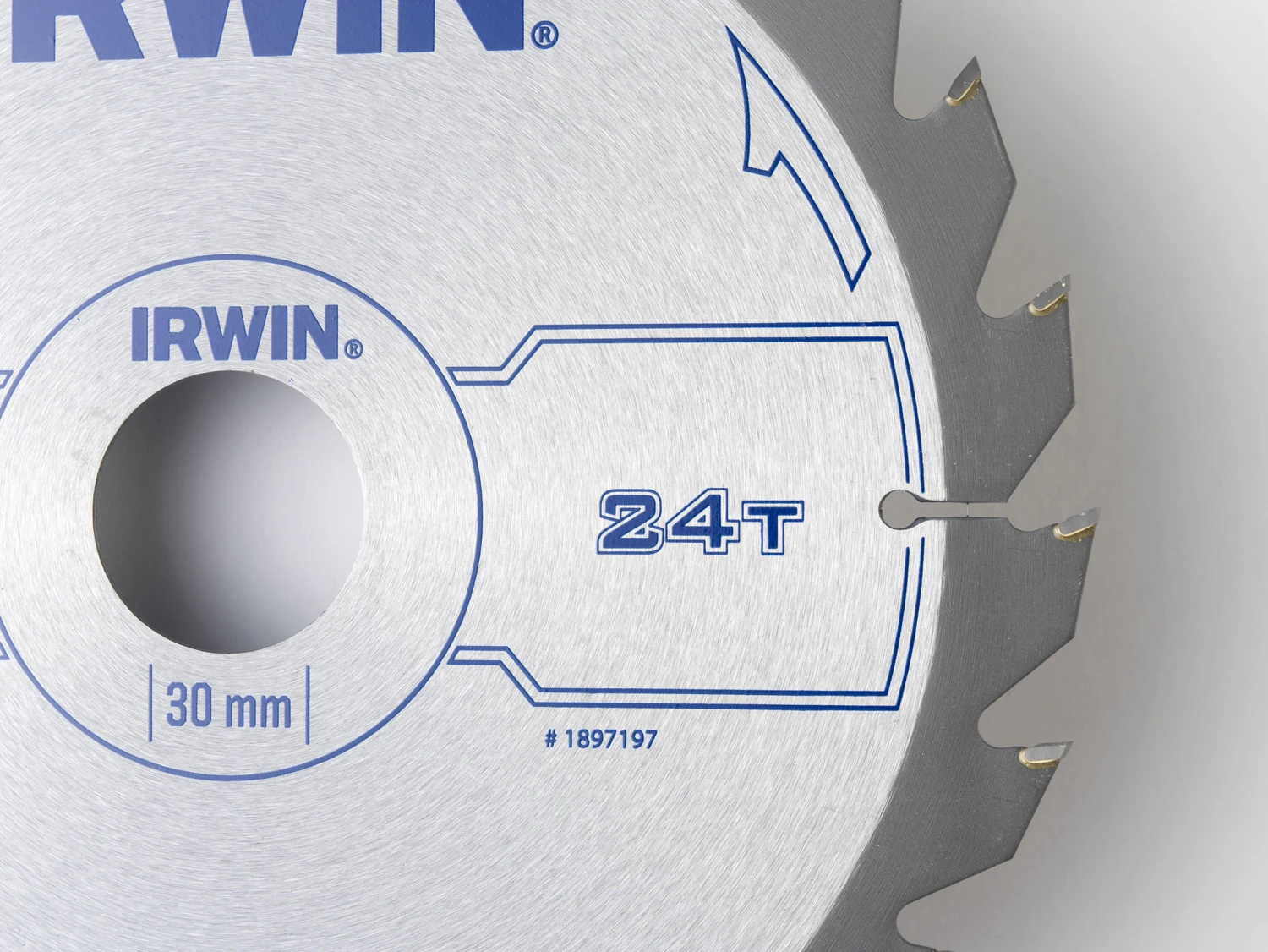Irwin Cirkelzaagblad Ø184 Mm. Inclusief Reduceerringen Waardoor Geschikt Voor Asgat 16, 20 En 30 Mm, Vertanding 24T
