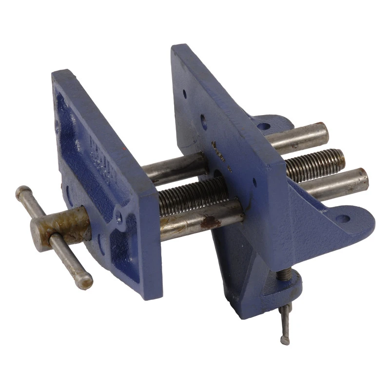 Compacte, lichtgewicht bankschroef die ook onder de werkbank kan worden gemonteerd zodat de bekken in het werkoppervlak zijn verzonken.